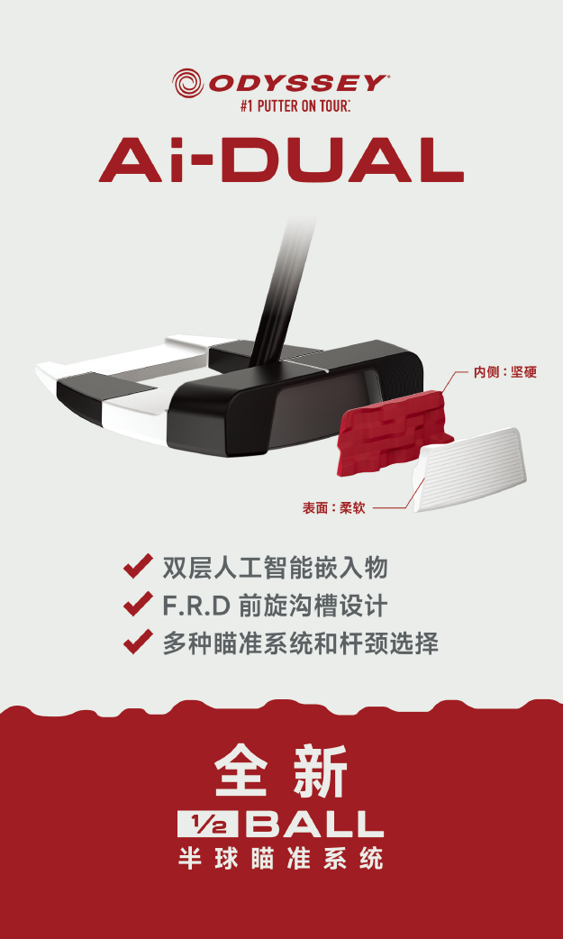搭载第二代Ai人工智能杆面&全新首发半球瞄准系统,ODYSSEY Ai-DUAL推杆新锐上市!